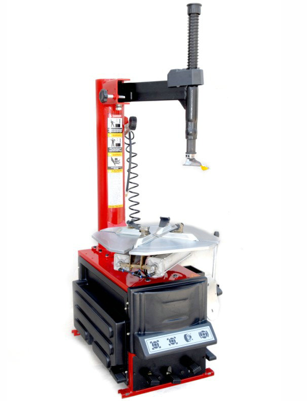 采用半自动横向摆臂拆装轮胎。