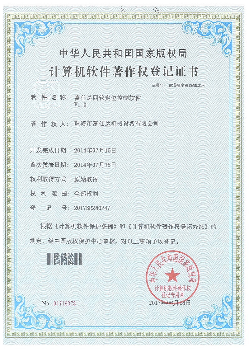 软件采用WIN7-64位正版操作系统及联想品牌电脑,操作简单易学,FOSTAR系列3D四轮定位软件的注册专利证以及操作界面如下。