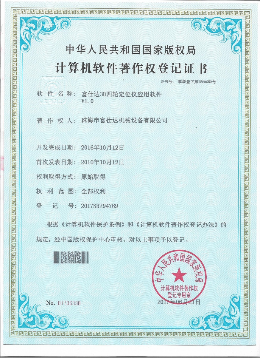 软件操作界面及软件注册证书见下: