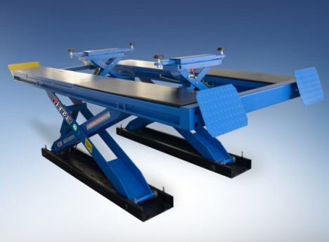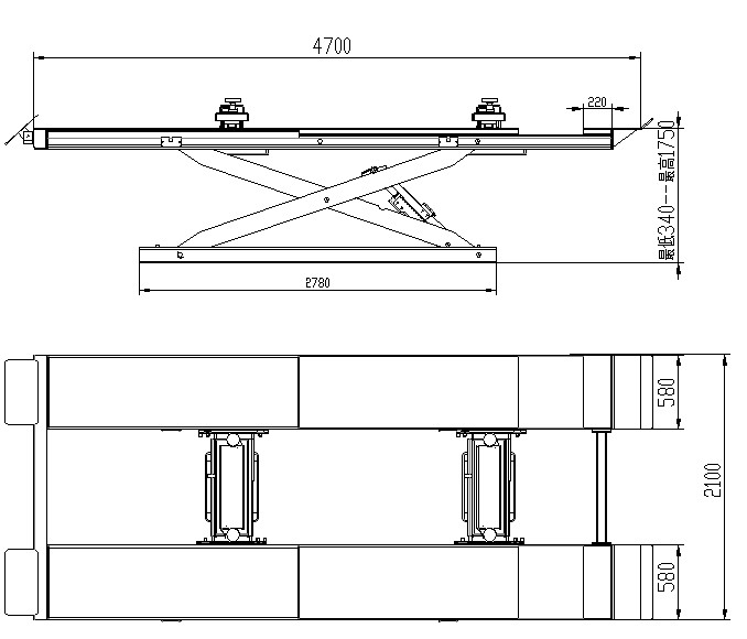 该四轮定位剪式举升机,是为汽车四轮定位和维修研制的超精密举升机,其特点有: