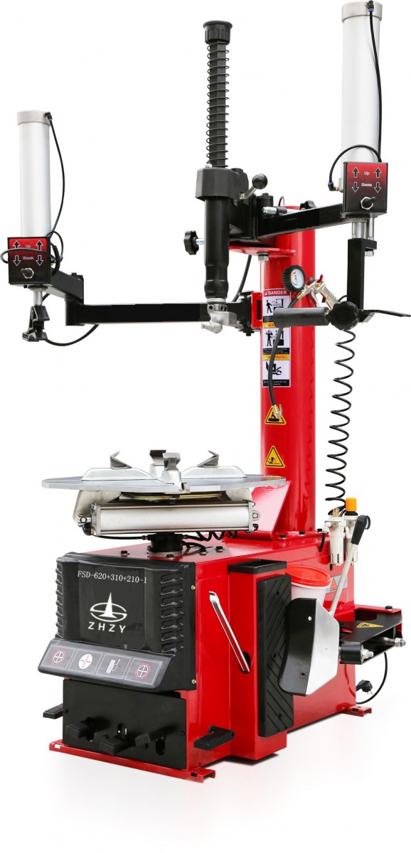 采用半自动横向摆臂及双侧助力手拆装轮胎。